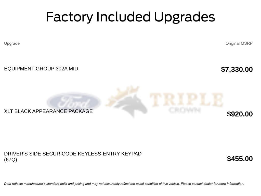 Contact Triple Crown Ford Stephenville today to schedule your test drive. Price includes: $1000 - Retail Bonus Cash. Exp. 03/31/2026 $2000 - Retail Customer Cash. Exp. 03/31/2026