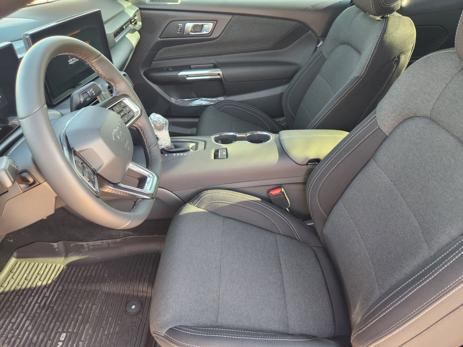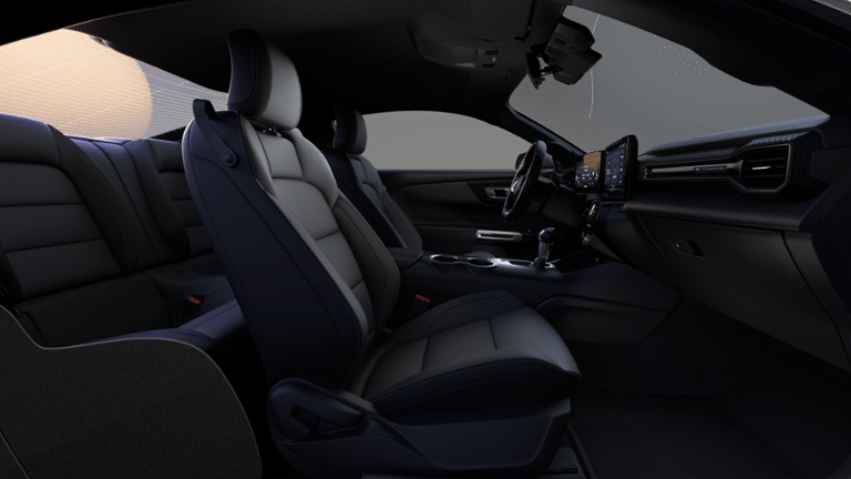 Slip behind the wheel and experience the Mustang's premium interior, featuring sport-inspired bucket seats, a leather-wrapped steering wheel, and the advanced SYNC 4 infotainment system. Stay connected with seamless smartphone integration, voice-activated controls, and a host of advanced safety features, including lane-keep assist, pre-collision assist with automatic emergency braking, and a rearview camera.