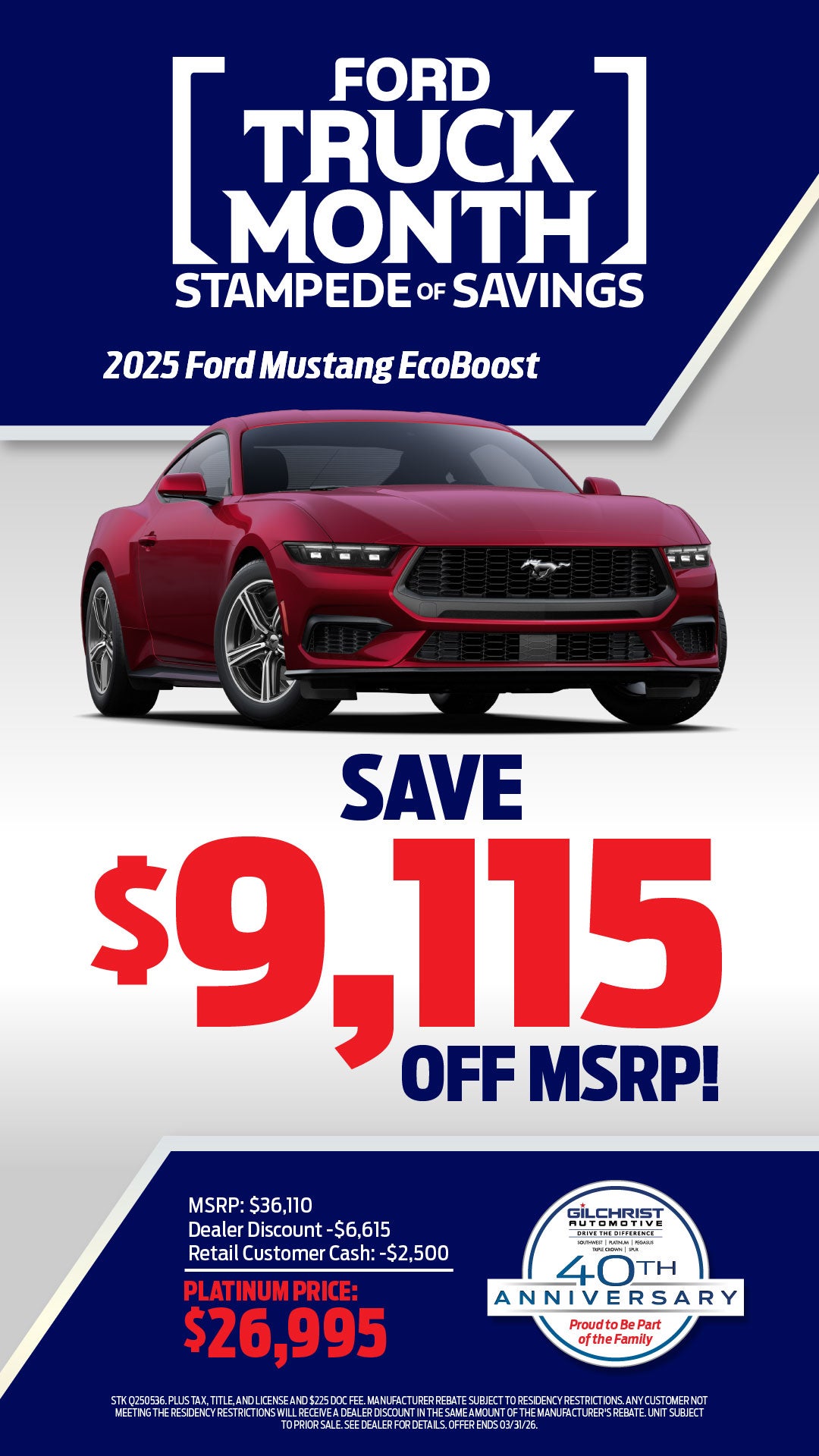 Save $9,115 Off MSRP on 2025 Ford Mustang EcoBost!