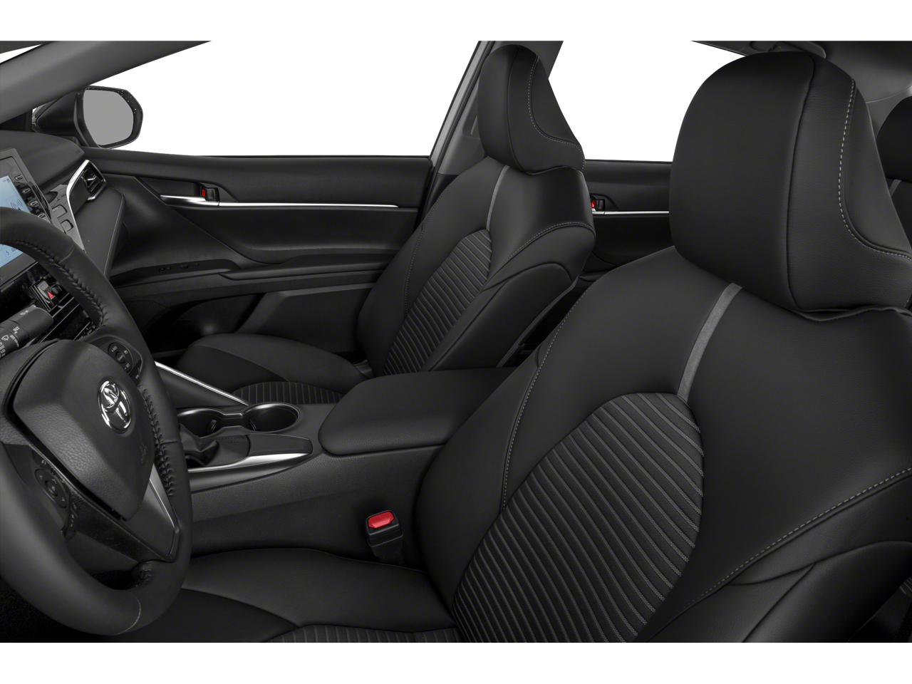 Step inside and you'll be greeted by a well-appointed cabin that combines style and functionality. The Camry's spacious interior offers ample room for passengers and cargo, with a split-folding rear seat for added versatility. Thoughtful touches like the power driver's seat, steering wheel-mounted audio controls, and the advanced infotainment system with Apple CarPlay and Android Auto integration ensure a seamless and enjoyable driving experience.