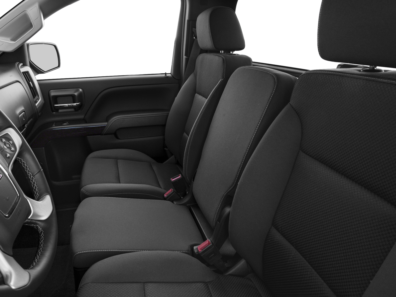 - Seats, front 40/20/40 split-bench 3-passenger, driver and front passenger recline with outboard head restraints and center fold-down armrest with storage. Vinyl has fixed lumbar and cloth has manually adjustable driver lumbar.
