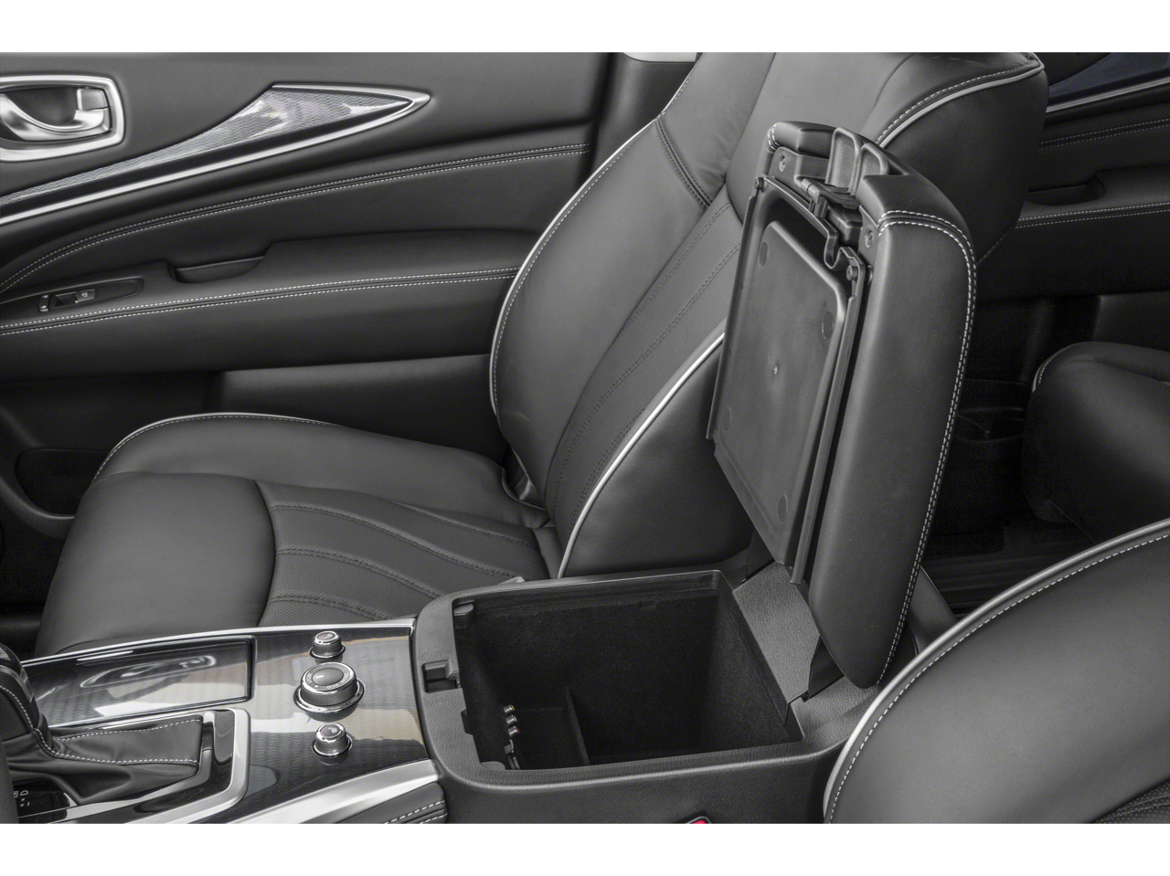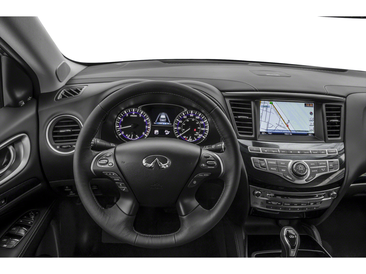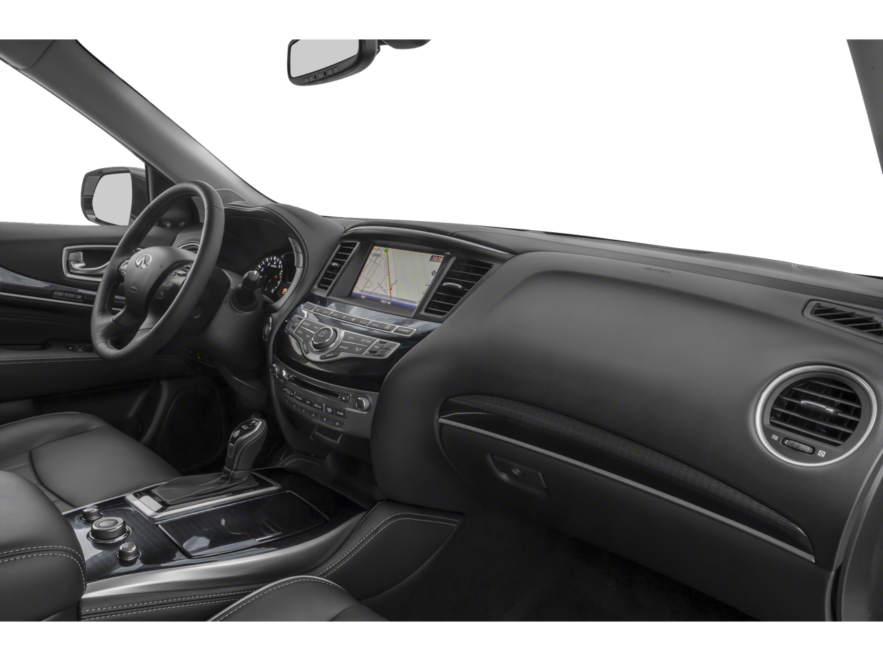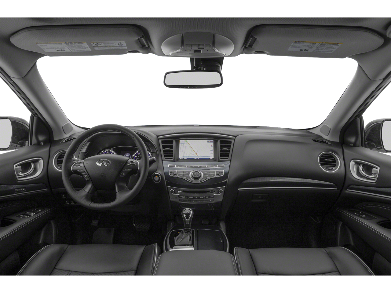 This 2019 INFINITI QX60 comes nicely equipped with Cargo Package Essential (Cargo Protector, Console Net, First Aid Kit, and Rear Cargo Cover), Essential Package (Around View Monitor w/Moving Object Detection, Front & Rear Sonar System (2FR/2RR), Illuminated Kick Plates (IKP), INFINITI InTouch w/Navigation & InTouch Services, Leather-Appointed Seat Trim, Rain-Sensing Front Windshield Wipers, and Voice Recognition for Navigation Functions), ProASSIST Package (Active Trace Control, Auto Side Dimming Mirrors, Backup Collision Intervention (BCI), Blind Spot Intervention (BSI) System, Distance Control Assist, ECO Pedal, Front & Rear Sonar Sensors (4FR/4RR), High Beam Assist, Intelligent Cruise Control (Full-Speed Range), Lane Departure Prevention (LDP), and Lane Departure Warning System), 13 Speakers, 3rd row seats: bench, 4-Wheel Disc Brakes, 5.25 Axle Ratio, ABS brakes, Air Conditioning, Alloy wheels, AM/FM radio: SiriusXM, Anti-whiplash front head restraints, Auto-dimming Rear-View mirror, Automatic temperature control, Bodyside moldings, Brake assist, Bumpers: body-color, Carpeted Floor Mats (4-Piece Set), CD player, Delay-off headlights, Driver door bin, Driver vanity mirror, Dual front impact airbags, Dual front side impact airbags, DVD-Audio, Electronic Stability Control, Four wheel independent suspension, Front anti-roll bar, Front Bucket Seats, Front Center Armrest w/Storage, Front dual zone A/C, Front fog lights, Front reading lights, Fully automatic headlights, Garage door transmitter: HomeLink, Heated door mirrors, Heated Front Seats, Heated front seats, Heated steering wheel, Illuminated entry, Illuminated Kick Plates (K11), Leather steering wheel, Leatherette Seat Trim, Literature Kit, Low tire pressure warning, Memory seat, Occupant sensing airbag, Outside temperature display, Overhead airbag, Overhead console, Panic alarm, Passenger door bin, Passenger vanity mirror, Power door mirrors, Power driver seat, Power Liftgate, Power moonroof, Power passenger seat, Power steering, Power windows, Radio data system, Radio: AM/FM/CD/DVD w/Bose Premium Audio System, Rear air conditioning, Rear anti-roll bar, Rear Bumper Protector, Rear reading lights, Rear seat center armrest, Rear window defroster, Rear window wiper, Reclining 3rd row seat, Remote keyless entry, Roof rack: rails only, Security system, Speed control, Speed-sensing steering, Speed-Sensitive Wipers, Splash Guards (Color Matched, Set of 4), Split folding rear seat, Spoiler, Steering wheel memory, Steering wheel mounted audio controls, Tachometer, Telescoping steering wheel, Tilt steering wheel, Traction control, Trip computer, Turn signal indicator mirrors, Variably intermittent wipers, Welcome Lighting, and Wheels: 18 Triple 5-Spoke Aluminum-Alloy.