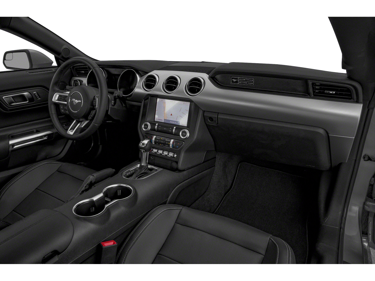 This 2021 Ford Mustang GT in Shadow Black comes with the following features: 5.0L V8 Ti-VCT 6-Speed Manual RWD Equipment Group 301A (Ambient Lighting w/MyColor), 3.55 Limited Slip Rear Axle, 4-Wheel Disc Brakes, ABS brakes, Air Conditioning, Alloy wheels, AM/FM Stereo, Auto High-beam Headlights, Auto-dimming Rear-View mirror, Brake assist, Bumpers: body-color, Compass, Delay-off headlights, Driver door bin, Driver vanity mirror, Dual front impact airbags, Dual front side impact airbags, Electronic Stability Control, Emergency communication system: 911 Assist, Exterior Parking Camera Rear, Four wheel independent suspension, Front anti-roll bar, Front Bucket Seats, Front Center Armrest, Front fog lights, Front reading lights, Fully automatic headlights, Illuminated entry, Knee airbag, Low tire pressure warning, Occupant sensing airbag, Outside temperature display, Overhead airbag, Overhead console, Panic alarm, Passenger door bin, Passenger vanity mirror, Power door mirrors, Power driver seat, Power passenger seat, Power steering, Power windows, Radio data system, Rain sensing wipers, Rear anti-roll bar, Rear window defroster, Remote keyless entry, Security system, Speed control, Speed-sensing steering, Speed-Sensitive Wipers, Split folding rear seat, Spoiler, Steering wheel mounted audio controls, Tachometer, Telescoping steering wheel, Tilt steering wheel, Traction control, Trip computer, Variably intermittent wipers, Voltmeter, and Wheels: 18 x 8 Machined-Face Aluminum.