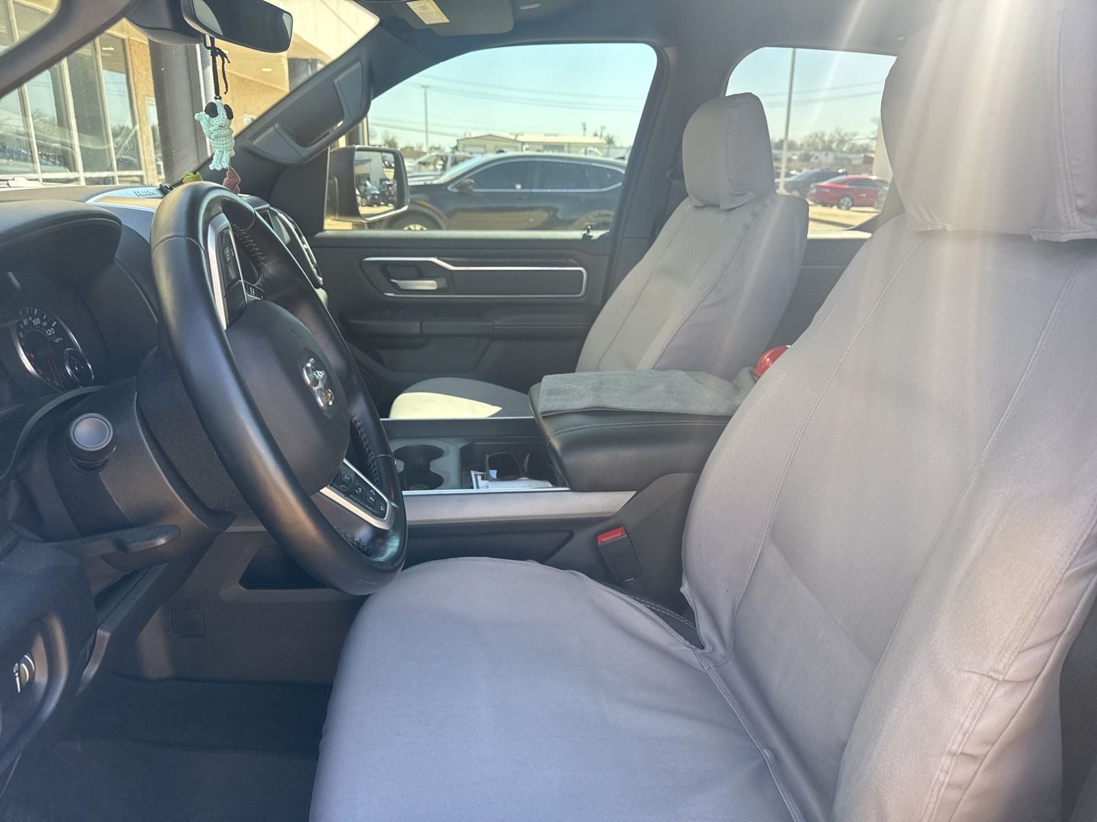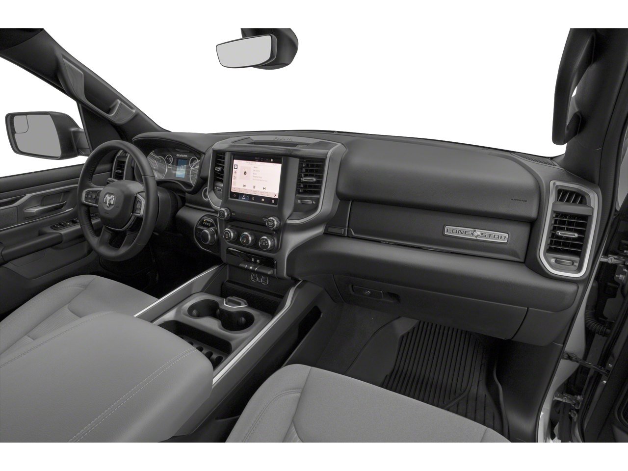 This 2022 Ram 1500 Big Horn/Lone Star in Diamond Black Crystal Pearlcoat comes with the following features: HEMI 5.7L V8 Multi Displacement VVT 8-Speed Automatic 4WD Big Horn Level B Equipment Group (DISC) (115V Auxiliary Power Outlet, 115V Auxiliary Rear Power Outlet, 400W Inverter, 4G LTE Wi-Fi Hot Spot, 8.4 Touchscreen Display, Air Conditioning ATC w/Dual Zone Control, Apple CarPlay, Auto-Dimming Exterior Driver Mirror, Auto-Dimming Rear-View Mirror, Black Premium Power Mirrors (GUL), Bluetooth® Handsfree Phone & Audio, Class IV Receiver Hitch, Cluster 7.0 TFT Color Display, Connectivity - US/Canada, Exterior Mirrors Courtesy Lamps, Exterior Mirrors w/Supplemental Signals, Foam Bottle Insert (Door Trim Panel), For More Info, Call 800-643-2112, Glove Box Lamp, Google Android Auto, Heated Front Seats, Heated Steering Wheel, Integrated Center Stack Radio, Media Hub w/2 Charge Only USBs, ParkSense Front/Rear Park Assist w/Stop, Power 2-Way Driver Lumbar Adjust, Power 8-Way Driver Seat, Power Adjustable Pedals, Radio: Uconnect 5 W w/8.4 Display, Rear Dome w/On/Off Switch Lamp, Rear Power Sliding Window, Rear Window Defroster, Remote Start System, Security Alarm, SiriusXM Radio Service, SiriusXM Satellite Radio, Sun Visors w/Illuminated Vanity Mirrors, Universal Garage Door Opener, and USB Host Flip), Quick Order Package 25R Lone Star (Regional) (Lone Star Badge), 3 Rear Seat Head Restraints, 3.21 Rear Axle Ratio, 4 Way Front Headrests, 4-Wheel Disc Brakes, 48V Belt Starter Generator, 6 Speakers, ABS brakes, Air Conditioning, Alloy wheels, AM/FM radio, Anti-Spin Differential Rear Axle, Black Exterior Mirrors, Brake assist, Bumpers: chrome, Cloth Bench Seat, Compass, Convex Wide-Angle Mirror Insert, Delay-off headlights, Driver door bin, Dual front impact airbags, Dual front side impact airbags, Electronic Stability Control, Emergency communication system: SiriusXM Guardian, Front anti-roll bar, Front Center Armrest w/Storage, Front fog lights, Front License Plate Bracket, Front reading lights, Front Seat Back Map Pockets, Front wheel independent suspension, Fully automatic headlights, Global Telematics Box Module (TBM), GPS Antenna Input, Heated door mirrors, Illuminated entry, Integrated Voice Command w/Bluetooth®, Leather steering wheel, Low tire pressure warning, Manual Adjust 4-Way Front Passenger Seat, Manufacturer's Statement of Origin, MOPAR Front & Rear Rubber Floor Mats, Occupant sensing airbag, Outside temperature display, Overhead airbag, Overhead console, Panic alarm, ParkView Rear Back-Up Camera, Passenger door bin, Passenger vanity mirror, Power door mirrors, Power steering, Power windows, Radio data system, Radio: Uconnect 3 w/5 Display, Rear 60/40 Folding Seat, Rear anti-roll bar, Rear seat center armrest, Rear step bumper, Remote keyless entry, Speed control, Split folding rear seat, Steering wheel mounted audio controls, Tachometer, Telescoping steering wheel, Tilt steering wheel, Traction control, Trip computer, Variably intermittent wipers, Voltmeter, Wheels: 18 x 8 Cast-Aluminum Painted, and Wheels: 20 x 9 Aluminum Chrome Clad (WRK)