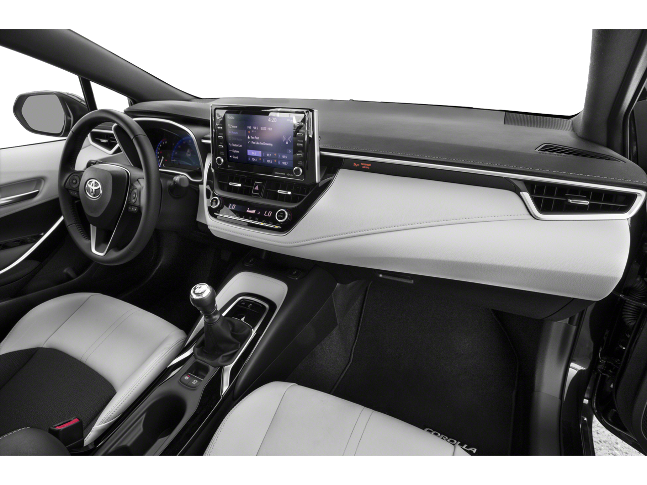 This 2022 Toyota Corolla Hatchback comes nicely equipped with 4-Wheel Disc Brakes, 6 Speakers, ABS brakes, Air Conditioning, Alloy wheels, AM/FM radio: SiriusXM, Apple CarPlay/Android Auto, Auto High-beam Headlights, Automatic temperature control, Blind Spot Monitor (BSM), Brake assist, Bumpers: body-color, Compass, Delay-off headlights, Driver door bin, Driver vanity mirror, Dual front impact airbags, Dual front side impact airbags, Dual Mode Air Conditioner, Electronic Stability Control, Emergency communication system: Safety Connect with 1-year trial, Exterior Parking Camera Rear, Fabric/Leather Seat Trim, Four wheel independent suspension, Front anti-roll bar, Front Bucket Seats, Front Center Armrest, Front dual zone A/C, Front Fog & Driving Lamp, Front fog lights, Front reading lights, Heated door mirrors, Heated front seats, Heated Sport Front Seats, Htd Power Outside Mirrors w/Turn Signal Indicators, Illuminated entry, Knee airbag, Leather Shift Knob, Low tire pressure warning, MPH Speedometer, Occupant sensing airbag, Outside temperature display, Overhead airbag, Overhead console, Panic alarm, Passenger door bin, Passenger vanity mirror, Piano Black Inner Door Garnish, Power door mirrors, Power driver seat, Power steering, Power windows, Radio data system, Radio: Audio Plus, Rear anti-roll bar, Rear seat center armrest, Rear side impact airbag, Rear window defroster, Rear window wiper, Remote keyless entry, Security system, Speed control, Speed-sensing steering, Split folding rear seat, Spoiler, Steering wheel mounted audio controls, Tachometer, Telescoping steering wheel, Tilt steering wheel, Traction control, Trip computer, Turn signal indicator mirrors, Variably intermittent wipers, and Wheels: 18 Bright Machine-Finished Aluminum.