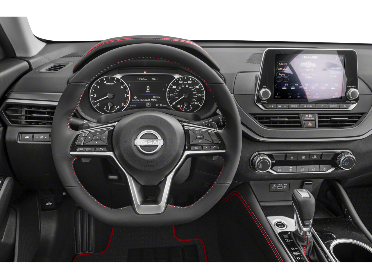 This 2024 Nissan Altima 2.5 SR in Gun Metallic comes with the following features: SR Premium Package (2-Way Driver Power Lumbar Support, 4-Way Power Passenger Seat, Heated Front Seats, Leather-Appointed Seat Trim, NissanConnect, Premium Sport Interior Finishers, and Single Panel Moonroof), 4-Wheel Disc Brakes, 6 Speakers, ABS brakes, Air Conditioning, Alloy wheels, AM/FM radio: SiriusXM, Auto High-beam Headlights, Blind Spot Warning, Body-Colored Splash Guards, Brake assist, Bumpers: body-color, Delay-off headlights, Driver door bin, Driver vanity mirror, Dual front impact airbags, Dual front side impact airbags, Electronic Stability Control, Four wheel independent suspension, Front anti-roll bar, Front Bucket Seats, Front Center Armrest, Front reading lights, Fully automatic headlights, Illuminated entry, Knee airbag, Leather Shift Knob, Low tire pressure warning, NissanConnect featuring Apple CarPlay, Occupant sensing airbag, Outside temperature display, Overhead airbag, Overhead console, Panic alarm, Passenger door bin, Passenger vanity mirror, Power door mirrors, Power driver seat, Power steering, Power windows, Radio data system, Radio: AM/FM Audio System, Rear anti-roll bar, Rear Parking Sensors, Rear reading lights, Rear seat center armrest, Rear side impact airbag, Rear window defroster, Remote keyless entry, Security system, Speed control, Speed-sensing steering, Speed-Sensitive Wipers, Split folding rear seat, Sport Seat Trim, SR Floor Mats/Trunk Mat/Hideaway Nets, Steering wheel mounted audio controls, Tachometer, Telescoping steering wheel, Tilt steering wheel, Traction control, Trip computer, Trunk Organizer Tray, Unique Sport Seats, Variably intermittent wipers, and Wheels: 19 Sport Alloy. 26/36 City/Highway MPG