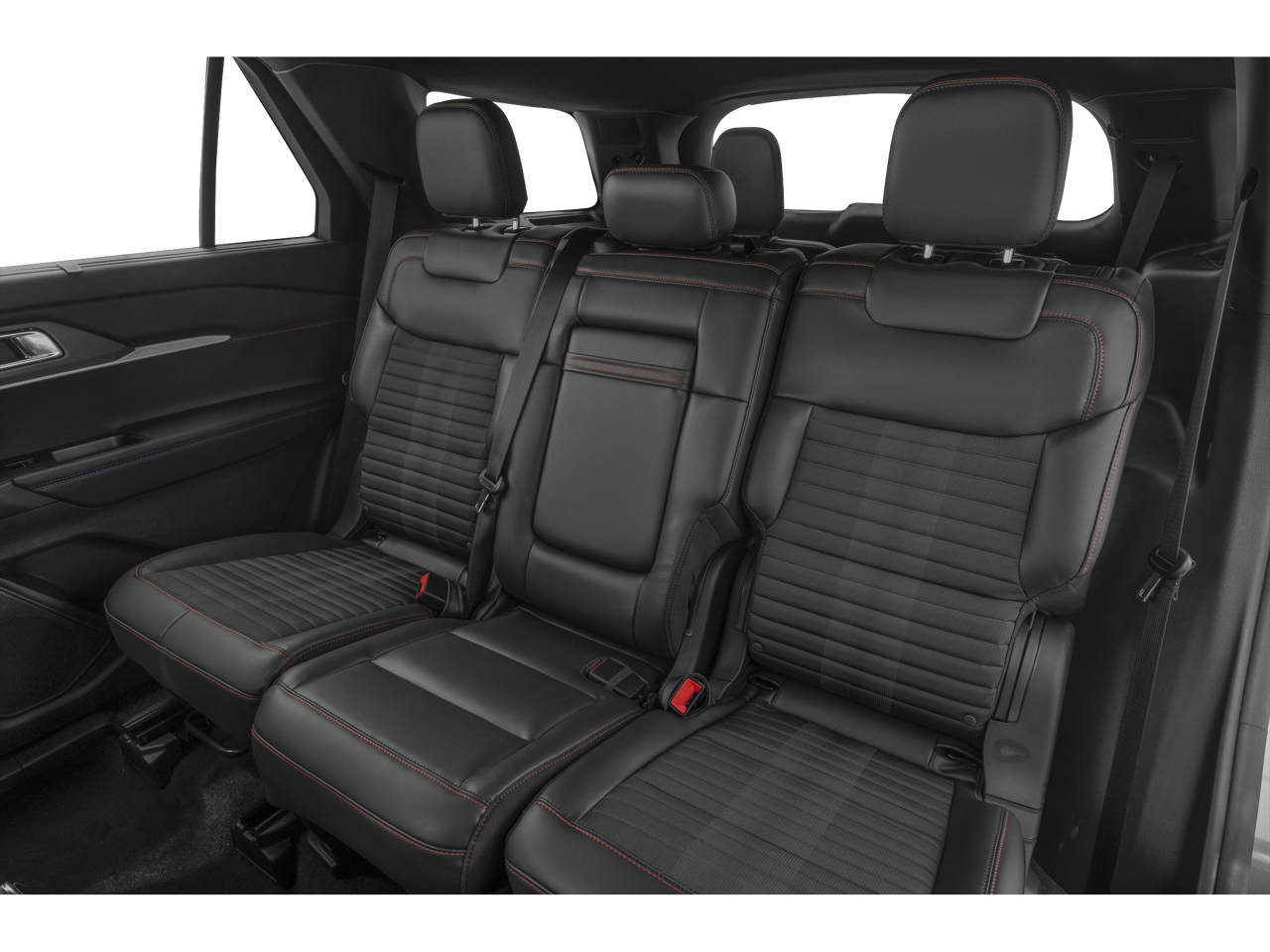 This 2025 Ford Explorer ST-Line in Red Metallic comes with the following features: 2.3L EcoBoost I-4 10-Speed Automatic RWD Equipment Group 300A Standard Package, Premium Package (110V/150W AC Power Outlet, 2nd Row Heated Seats, Ambient Lighting, Auto-Dimming Interior Rear-View Mirror, Memory Driver's Seat, Power-Folding Sideview Mirrors w/Autofold, Rain-Sensing Wipers (Front Only), and Wireless Charging Pad), ST-Line Street Pack (Performance Brakes, Red Painted Perf Front & Rear Brake Calipers, and Wheels: 21 Magnetite-Painted Aluminum), 10 Speakers, 2nd Row Captain's Chairs w/E-Z Entry & Armrest, 3.58 Non-Limited Slip Rear Axle, 3rd row seats: bench, 4-Wheel Disc Brakes, ABS brakes, Air Conditioning, Alloy wheels, AM/FM radio: SiriusXM with 360L, Apple CarPlay/Android Auto, Auto High-beam Headlights, Automatic temperature control, Brake assist, Bumpers: body-color, Compass, Delay-off headlights, Driver door bin, Driver vanity mirror, Dual front impact airbags, Dual front side impact airbags, Electronic Stability Control, Emergency communication system: 911 Assist, Exterior Parking Camera Rear, Four wheel independent suspension, Front anti-roll bar, Front Bucket Seats, Front Center Armrest, Front dual zone A/C, Front fog lights, Front License Plate Bracket, Front reading lights, Fully automatic headlights, Garage door transmitter, Heated door mirrors, Heated front seats, Heated steering wheel, Heated Unique Cloth Captain's Chairs, Illuminated entry, Internet access capable: FordPass Connect 5G, Knee airbag, Leather steering wheel, Low tire pressure warning, Navigation System, Occupant sensing airbag, Outside temperature display, Overhead airbag, Overhead console, Panic alarm, Passenger door bin, Passenger vanity mirror, Power door mirrors, Power driver seat, Power Liftgate, Power passenger seat, Power steering, Power windows, Radio: B&O Sound System by Bang & Olufsen, Rear air conditioning, Rear anti-roll bar, Rear reading lights, Rear window defroster, Rear window wiper, Remote keyless entry, Security system, Speed control, Speed-sensing steering, Speed-Sensitive Wipers, Split folding rear seat, Spoiler, Steering wheel mounted audio controls, Tachometer, Telescoping steering wheel, Tilt steering wheel, Traction control, Trip computer, Variably intermittent wipers, and Wheels: 20 Ebony-Painted Machined Aluminum.