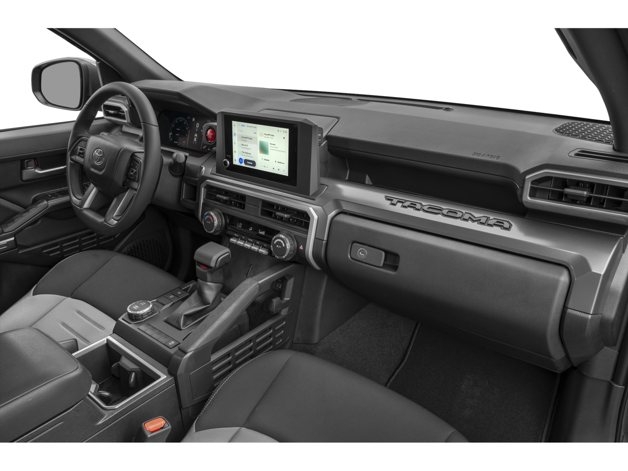 This 2025 Toyota Tacoma 4WD comes nicely equipped with ABS brakes, Alloy wheels, Electronic Stability Control, Heated door mirrors, Illuminated entry, Low tire pressure warning, Remote keyless entry, Traction control, 3.583 Axle Ratio, 4-Wheel Disc Brakes, 6 Speakers, Air Conditioning, AM/FM radio: SiriusXM, Anti-whiplash front head restraints, Apple CarPlay/Android Auto, Auto High-beam Headlights, Auto-dimming Rear-View mirror, Automatic temperature control, Brake assist, Bumpers: body-color, Driver door bin, Driver vanity mirror, Dual front impact airbags, Dual front side impact airbags, Emergency communication system: Safety Connect (1-year trial), Exterior Parking Camera Rear, Fabric Seat Trim, Four wheel independent suspension, Front anti-roll bar, Front Bucket Seats, Front Center Armrest, Front fog lights, Front reading lights, Fully automatic headlights, Knee airbag, Leather Shift Knob, Leather steering wheel, Occupant sensing airbag, Outside temperature display, Overhead airbag, Overhead console, Panic alarm, Passenger door bin, Passenger vanity mirror, Power door mirrors, Power steering, Power windows, Radio: 8 Toyota Audio Multimedia, Rear step bumper, Rear window defroster, Security system, Speed control, Speed-sensing steering, Split folding rear seat, Steering wheel mounted audio controls, Tachometer, Telescoping steering wheel, Tilt steering wheel, Trip computer, Turn signal indicator mirrors, Variably intermittent wipers, and Wheels: 18 TRD Sport Alloy.
