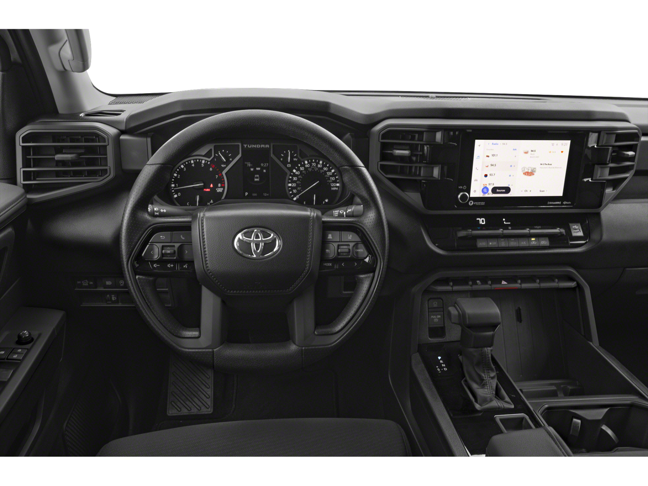 This 2025 Toyota Tundra 4WD comes nicely equipped with ABS brakes, Active Cruise Control, Electronic Stability Control, Heated door mirrors, Illuminated entry, Low tire pressure warning, Remote keyless entry, Traction control, 18 Styled Steel Wheels, 3.31 Axle Ratio, 4-Wheel Disc Brakes, 6 Speakers, Air Conditioning, AM/FM radio: SiriusXM, Apple CarPlay/Android Auto, Auto High-beam Headlights, Automatic temperature control, Brake assist, Bumpers: body-color, Delay-off headlights, Driver door bin, Driver vanity mirror, Dual front impact airbags, Dual front side impact airbags, Emergency communication system: Safety Connect (10-year trial), Exterior Parking Camera Rear, Fabric Seat Trim, Front anti-roll bar, Front Bucket Seats, Front Center Armrest, Front reading lights, Front wheel independent suspension, Fully automatic headlights, Knee airbag, Occupant sensing airbag, Outside temperature display, Overhead airbag, Overhead console, Panic alarm, Passenger door bin, Passenger vanity mirror, Power door mirrors, Power steering, Power windows, Radio data system, Radio: Audio Multimedia System, Rear reading lights, Rear step bumper, Rear window defroster, Safety Connect, Security system, Speed control, Speed-sensing steering, Split folding rear seat, Steering wheel mounted audio controls, Tachometer, Telescoping steering wheel, Tilt steering wheel, Trip computer, Variably intermittent wipers, and Voltmeter.